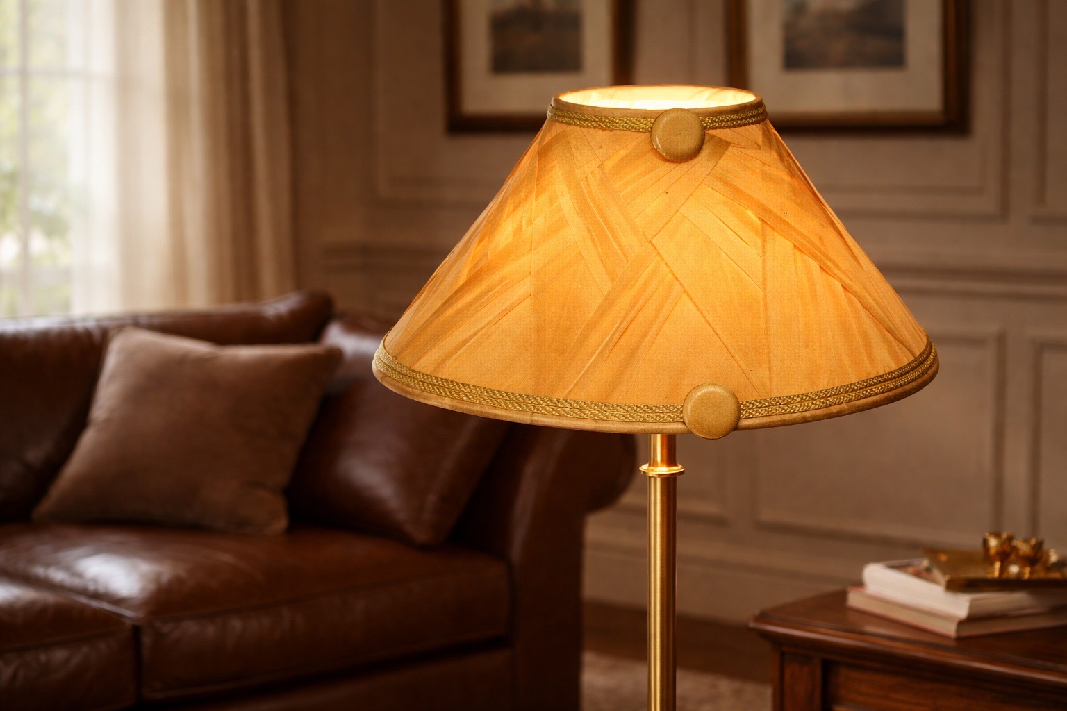 Les abat-jours tressés offrent élégance et originalité aux lampes qu’ils habillent. On peut jouer avec les matières, tout soie, soie et lin, coton, chintz ou encre matières végétales. Ici, un modèle soie doublé pongé de soie, boutons de soie orange pour une touche lumineuse et dynamique.