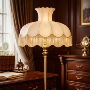 - Abat-jour traditionnel avec bordure à franges, volants et volants